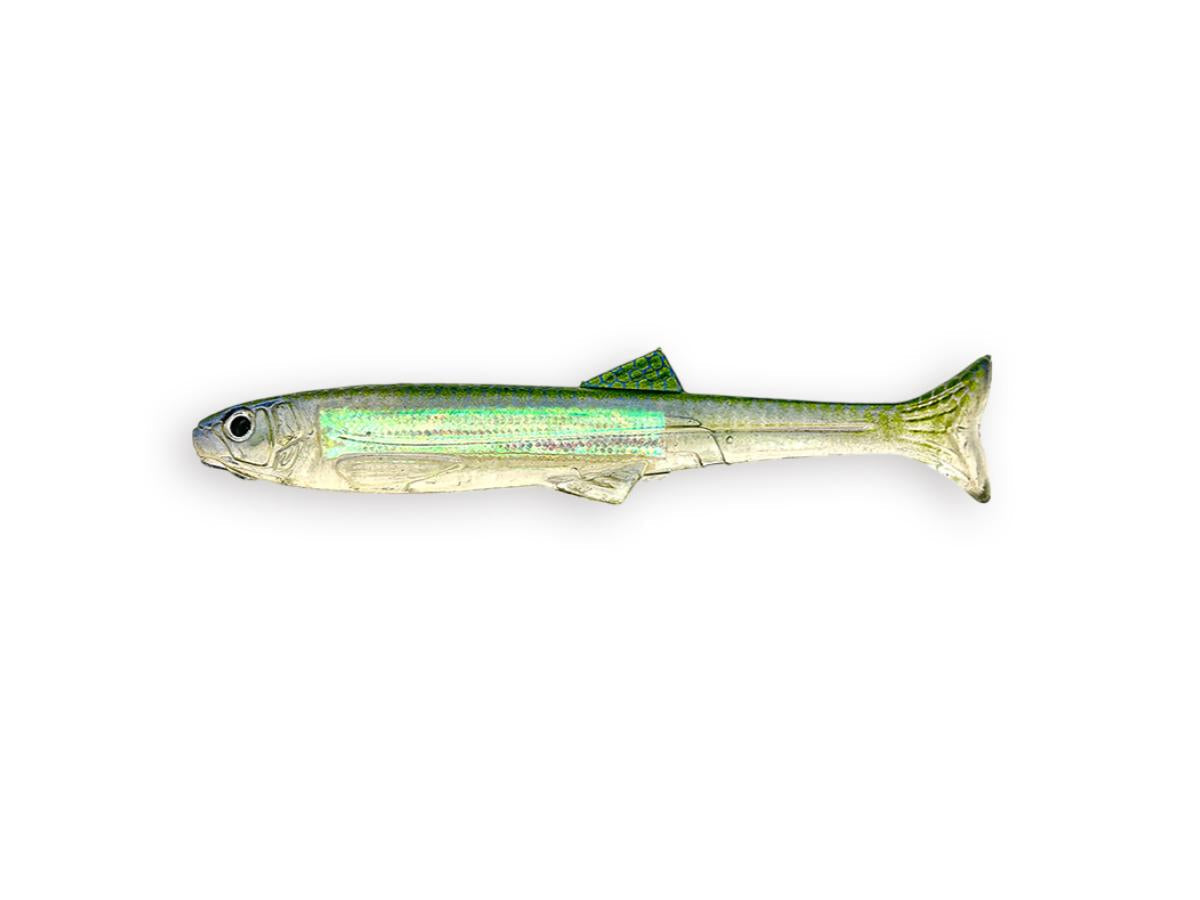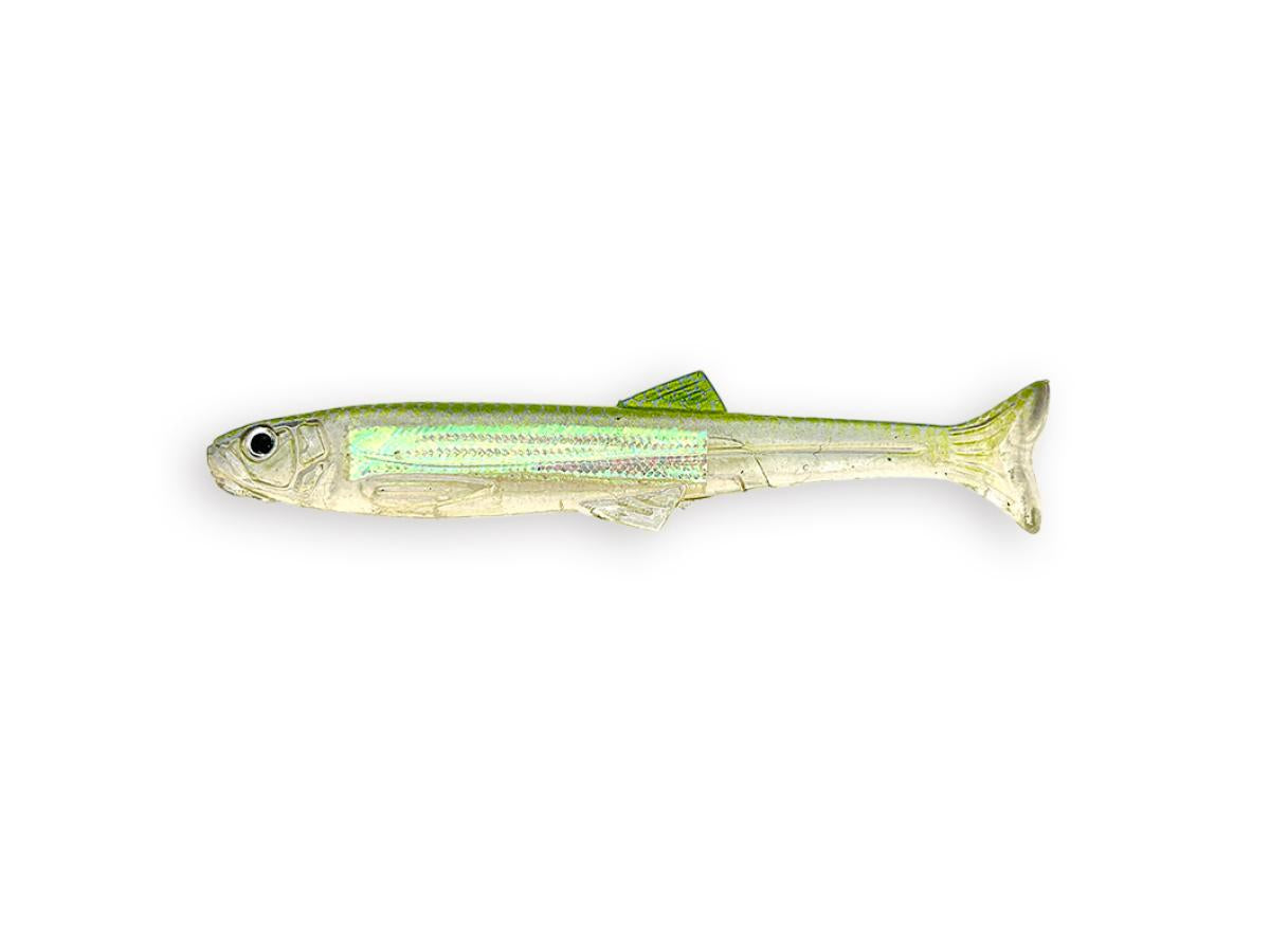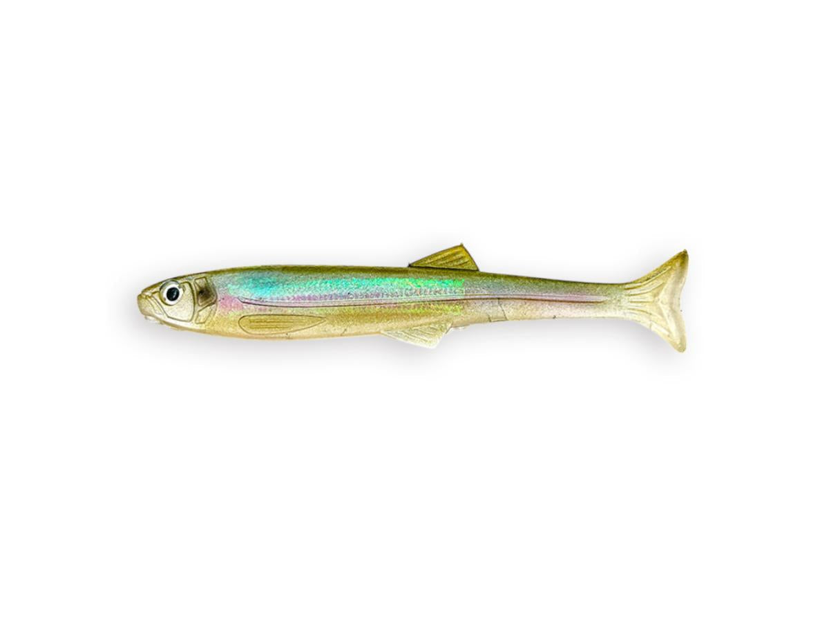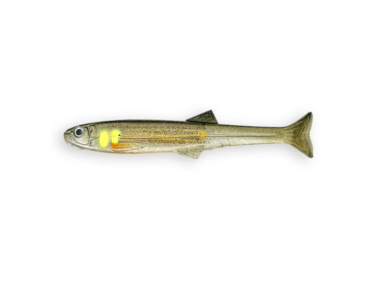 Downsizing the inherent power of the Huddle Trout. When retrieved dead slow with a **no-sinker rig**, it delivers the ultimate "huddle" action. This is a versatile **swim bait** compatible with various rigs such as **Texas rig, down shot rig, nail rig, wacky rig, and jig head rig**, depending on the area and field conditions.